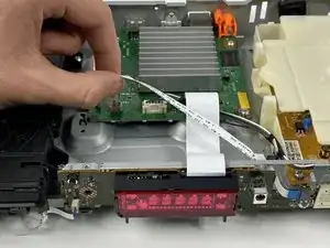 Отсоедините ленточные кабели, которые соединяют материнскую плату с дисковым приводом.