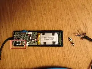 Также обратите внимание, что соединения батареи (черные, белые, красные провода) склеены белым клеем с платой.