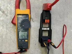 Перед подключением мультиметра убедитесь, что он включён, находится в режиме измерения напряжения переменного тока и диапазон установлен на авто или выше 150 В переменного тока.