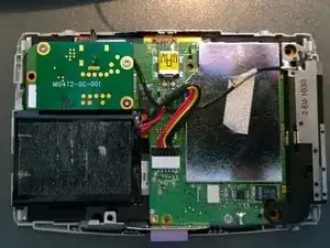 Откройте ваш TomTom так же, как показано в других руководствах на www.ifixit.com. Моя модель (TomTom XL Live) открывается путём отклеивания наклейки внизу, выворачивания передней панели наружу за серебристую окантовку, как в руководстве по ремонту TomTom XXL 540. Отсоедините кабели от аккумулятора, динамика и экрана и открутите материнскую плату (ещё раз: смотрите другое руководство).