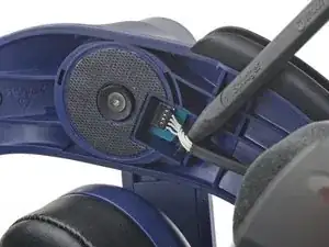 Используйте尖端 вашего инструмента для поддевания, чтобы вынуть два резиновых прокладок рядом со Schrauben на наушниках.