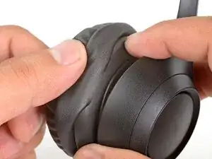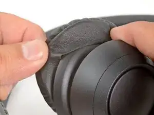 Заверните оставшуюся часть клапана по краю, продвигаясь вокруг всего наушника. Осторожно тяните амбушюр при необходимости.