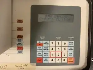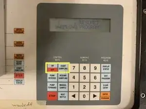Переключите выключатель блока аккумуляторов в положение "Manual Mode". Нажмите кнопку On, затем Start Sampling, затем Enter.