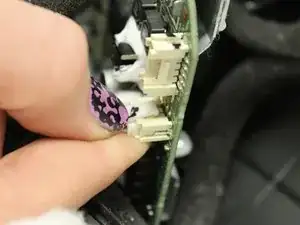 Удерживая панель разъёмов, поочерёдно отсоединяйте два лентовых кабеля, нажимая вниз защёлку на разъёмах и вытягивая разъём от панели разъёмов.
