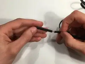 Срежьте изоляцию с провода, ведущего к наушникам.