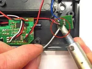 Повторите предыдущий шаг для синего и второго черного провода, соединяющего адаптер с отсеком для батарей.