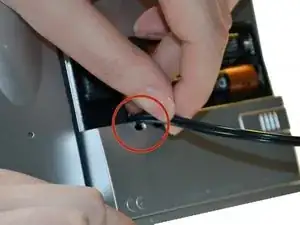 Аккуратно извлеките адаптер переменного тока из розетки, находящейся слева от батарей.