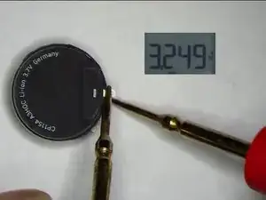 Измерьте напряжение нового аккумулятора перед установкой. Видно, что аккумулятор в порядке — нормальное напряжение.