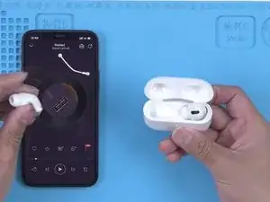 Далее припаяйте приёмный гибкий кабель. Подключите гибкий кабель и закройте корпус AirPods Pro. Поместите AirPods Pro в зарядный кейс. AirPods Pro можно зарядить и подключить к телефону. Музыка воспроизводится. Поскольку мы удалили клей, при воспроизведении будет шум.