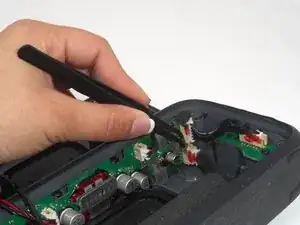 Используйте пинцет, чтобы удалить герметик, фиксирующий разъём аккумулятора.