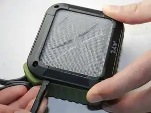 Вставьте лопатку между черным кожухом, в котором расположен низкочастотный динамик, и внешним резиновым покрытием.