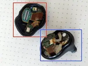 После открытия наушника вы увидите две крошечные печатные платы, соединённые платой-плате.