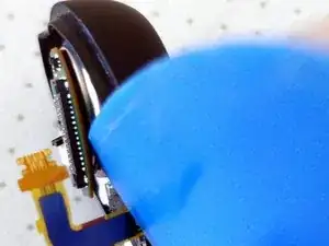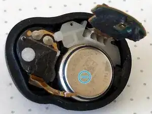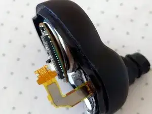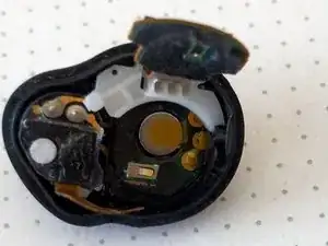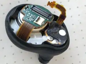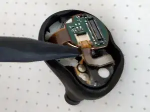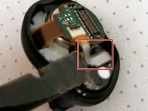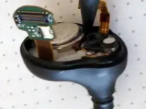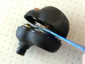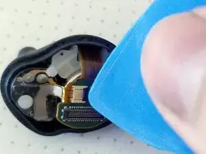 Внимание: не используйте металлический инструмент на этом шаге, так как аккумулятор всё ещё находится внутри наушника, и вы можете непреднамеренно коротнуть компоненты, пока они ещё под напряжением.