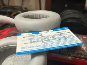 Используйте пластиковую карту, чтобы снять амбушюр с левой чашки. Вставьте карту в щель и совершите вращательное движение.
