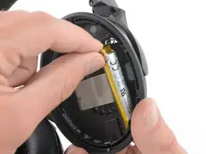 Перед установкой нового аккумулятора удалите оставшийся клей с наушников и очистите склеенные поверхности изопропиловым спиртом и безворсовой тканью.