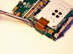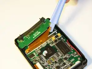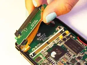 С помощью пластиковой лопатки полностью отведите шлейф от платы.
