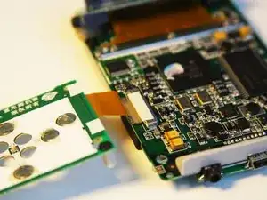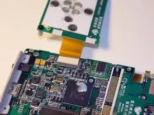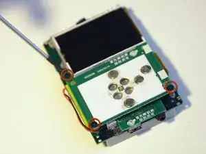 С помощью отвертки Philips #00 снимите три винта длиной 4 мм, крепящие модуль кнопок.