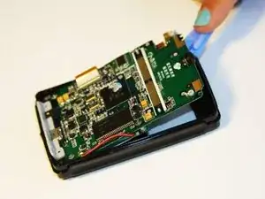 С помощью пластиковой лопатки подведите инструмент под верхний край платы.