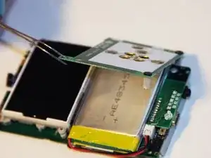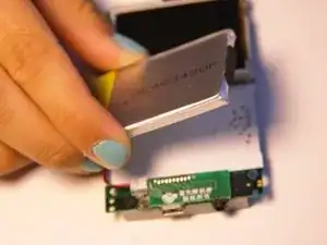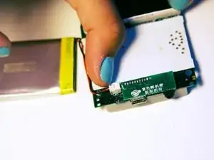 Поместите два пальца на контакты аккумулятора и аккуратно вытяните разъём питания полностью из платы.