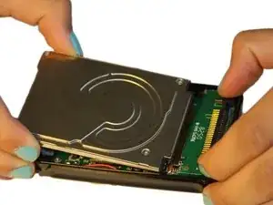 Поместите пальцы на IDE-разъёмы, аккуратно поднимите и вытяните жёсткий диск из IDE-модуля.