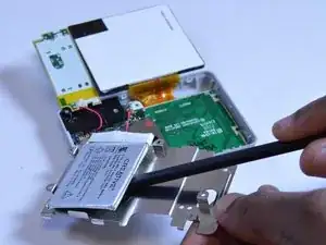 Используйте лопатку, чтобы извлечь аккумулятор из средней пластины.
