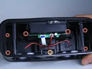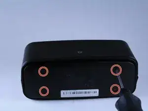 Используйте отвертку JIS #00, чтобы удалить четыре винта 3/32", которые крепят основание к корпусу акустической системы.