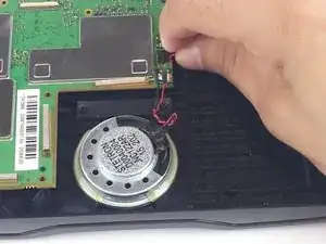 Возьмитесь за провод рядом с материнской платой и аккуратно поднимите, чтобы отсоединить аккумулятор.