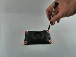 Используйте отвертку Torx T5, чтобы отвинтить четыре винта в углах задней панели устройства.