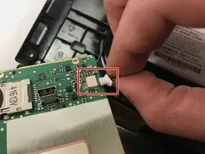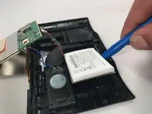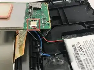 Используйте синий пластиковый инструмент для осторожного извлечения аккумулятора из GPS.