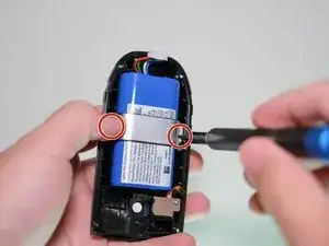 Используя отвёртку Phillips #000, удалите два винта длиной 4,8 мм, фиксирующих кронштейн аккумулятора.