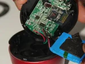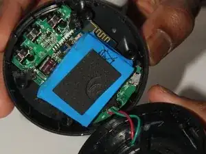 После того как вы сняли винты, аккуратно откройте корпус. Аккумулятор покрыт синей упаковкой.