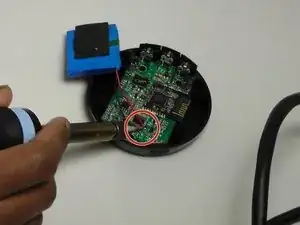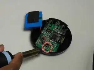 Используйте паяльник, чтобы отсоединить контакты аккумулятора от материнской платы.