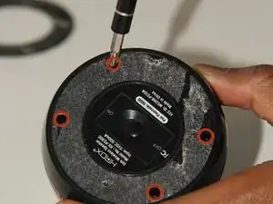 Аккуратно снимите резиновую крышку, чтобы получить доступ к винтам. При необходимости проколите остатки клея, чтобы открыть головки винтов.