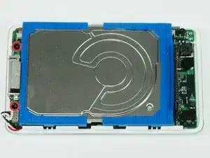 Поднимите жёсткий диск одной рукой, чтобы получить доступ к аккумулятору, расположенному под ним.