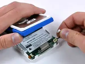 При необходимости захватите аккумулятор, чтобы оторвать его от клея, фиксирующего его в передней части корпуса.