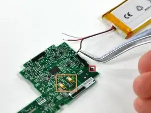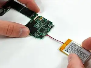 Выверните аккумулятор из iPod и положите его рядом с устройством. Аккумулятор всё ещё припаян к плате логики тремя проводами, поэтому не удаляйте его полностью.