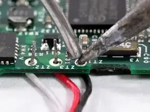 Из‑за хрупкости электронных компонентов крайне важно ограничить количество тепла, передаваемого от паяльника к плате логики. Один из простых способов — тянуть за провод батареи с небольшой непрерывной силой, пока паяльник нагревает контакт.