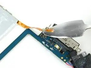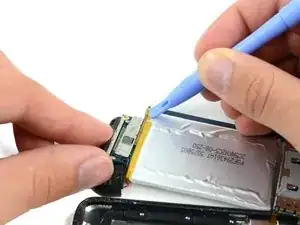 Используйте инструмент для вскрытия iPod, чтобы поддеть разъём разъёма для наушников и вытащить его из гнезда на логической плате.