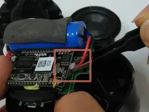 Точка подключения аккумулятора расположена напротив точки подключения динамика.