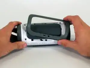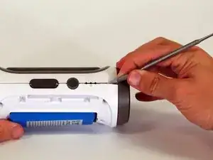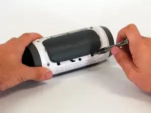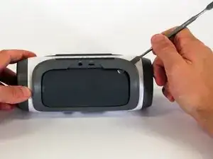 Начав с угла устройства, где корпус и боковина соединяются, используйте заострённую металлическую лопатку, чтобы отщёлкнуть заднюю крышку динамика и разорвать клей, скрепляющий шов.