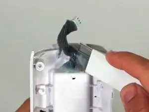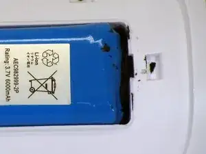 С помощью лезвия бритвы удалите клей, фиксирующий кабель аккумулятора.