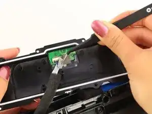 Поднимите чёрную фиксирующую защёлку ZIF-разъёма кончиком лопатки или ногтем, чтобы освободить кабель.