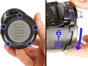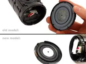 При снятии крышки шесть защёлок (по три с каждой стороны резинового шипа), которые крепят крышку к динамику, издают щелчки.