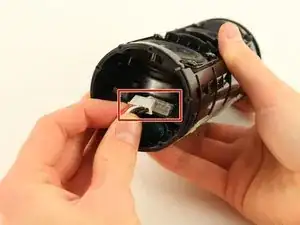 Крышку на противоположном от USB-порта конце: поверните — или — выкрутите винты с крышки. (зависит от версии модели: у более старых версий есть винты Phillips #1 длиной 9 мм)