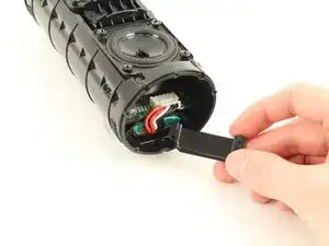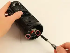 Выкрутите четыре винта длиной 13 мм с крестообразным шлицем JIS #0, которые крепят резиновый шип к динамику. Винты находятся по обе стороны внутри динамика.