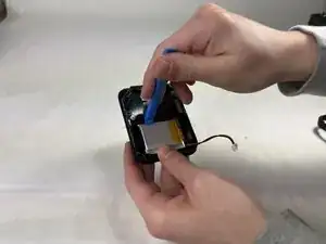 Важно отметить, что аккумулятор держится на небольшом клеевом квадрате, поэтому потребуется больше силы, чем может показаться необходимым.