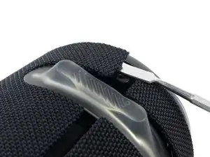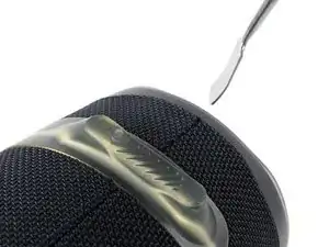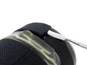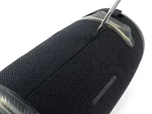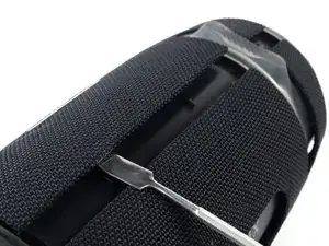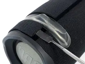 Тканевую оболочку JBL Xtreme 2 закрепляют пластиковые защёлки и винты. Чтобы не повредить оболочку, начните поддевать её с края, ближайшего к разъёмам.