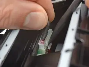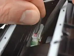 Избегайте сильного натяжения или резкого изгиба кабеля аккумулятора на следующем шаге. Сдвигайте аккумулятор только настолько, чтобы получить доступ к разъёму аккумулятора.