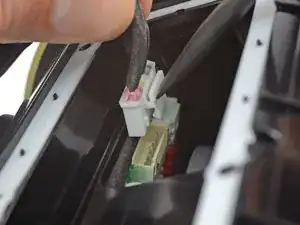 Свободной рукой захватите кабель аккумулятора прямо над разъёмом. Потяните разъём строго вверх из гнезда, покачивая его из стороны в сторону, чтобы ослабить фиксирующие клипсы.