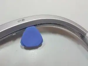 Приподнимите заднюю крышку динамика с помощью пластикового инструмента, как показано на картинке.
